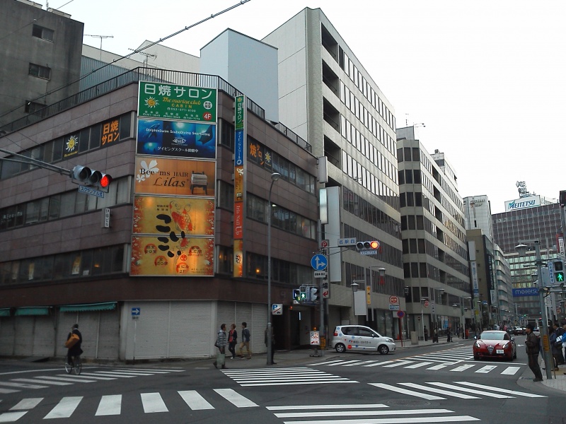 ・ユニモール9番出口から…あおぞら銀行とキャッスルプラザホテルの間の道を南へ、1つ目の信号「名駅4」角です。
