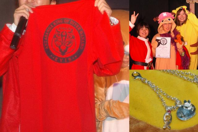 ランキング入賞10名には、今年からスタートした潜水王オリジナルロゴに潜水王ナンバー入ったかっこいいTシャツをプレゼント!そのほかに豪華賞品が贈られ、四回目の王者に輝いたタツヤくんには、年間200ダイブ達成を祝って、ワールドダイブのドライスーツ、アテナの潜水王グラスが贈られました。そして上位3名にはシルバー職人なづきちゃんより、evisオリジナル、かわいくオシャレなえびすけシルバーアクセサリーがプレゼントされました。来年、限定発売もするのでお楽しみに〜