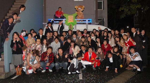 evis本店の3階を中心にホームパーティ♪総勢60名ほど。新スタッフみっちの手料理や近くのSAさんからケータリングした美味しい料理、そしてバーカウンターには生ビールサーバーやカクテルコーナー。楽しいゲーム大会には、仕事帰りにやってきた、舞妓(マイケルに掛けてマイコー)のヒロシ&太鼓持ちのしょうぢが乱入〜。花吹雪が舞いました。
