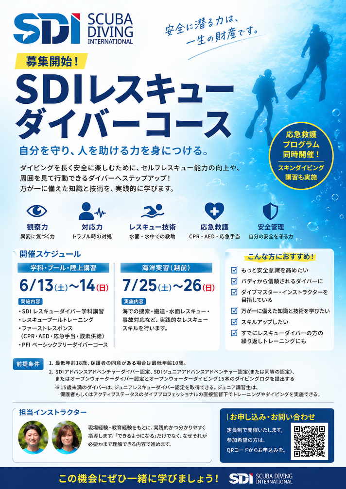 【募集開始】SDIレスキューダイバーコース開催のお知らせ