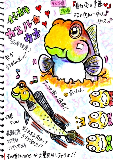 [学名]Ecsenius yaeyamensis [分類]条鰭綱-新鰭亜綱-棘鰭上目-スズキ目-ギンポ亜目-イソギンポ科 [和名]イシガキカエルウオ [英名] White-potted olive blenny, Yaeyama Coral Blenny [体長]5cm [生息地]八丈島、屋久島、琉球列島、東インド洋・西太平洋の熱帯域