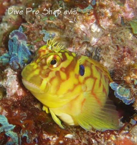 [撮影地]西伊豆 田子 沖根 [撮影者]児玉勝 [学名]Cirripectes variolosus [分類]条鰭綱-新鰭亜綱-棘鰭上目-スズキ目-ギンポ亜目-イソギンポ科-タテガミカエルウオ属 [和名]ベニツケタテガミカエルウオ [英名]Red-speckled blenny [体長]10㎝以下 [生息地]