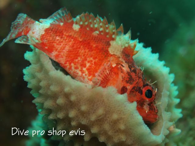 [学名]Scorpaenodes littoralis [分類]カサゴ目ーフサカサゴ科ーイソカサゴ属 [和名]イソカサゴ [英名]Cheekspot scorpionfish [体長]約5~10cm [生息地]西太平洋域。浅海の岩礁域 [特徴]カサゴに比べて全体的に赤みがかっている。鰓蓋下部に黒い斑点がある事でほかのフカカサゴ科とも区別ができる。 例によって背鰭の棘に毒をもっているため観察、扱いには注意が必要。2020/05/03