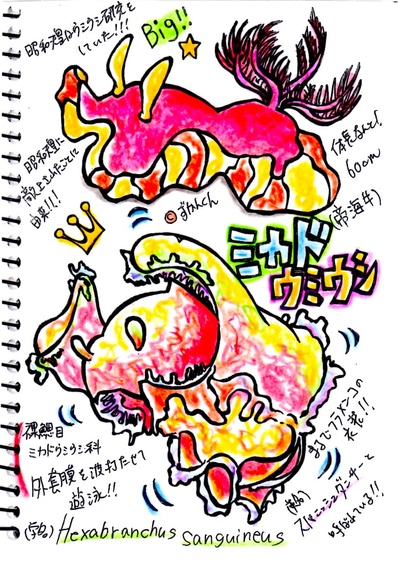 小さなウミウシの世界ですが、このミカドウミウシは巨大です!まさに帝の名にふさわしいウミウシといえます。ミカドウミウシはフラメンコを踊るように泳ぐことからスパニッシュダンサーとも呼ばれます!