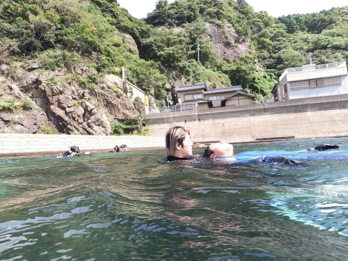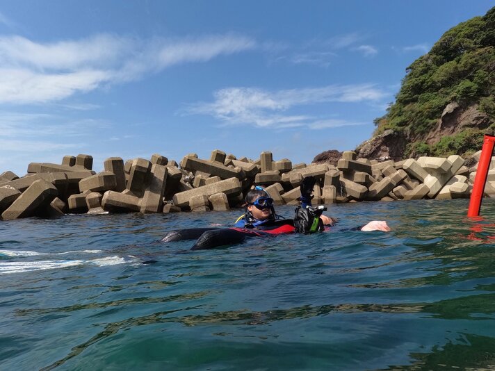 ビーチも波が出てきましたが、かぶし浜はビーチの波の入らないテトラ内エリアで潜ることができるんですね。浅いですが~この時期魚も結構いるのでじっくりテトラ内ダイビングで無事全チーム終了!