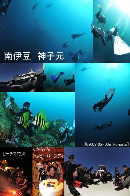 ダイビングのあとはのんびり温泉〜そして買出しを済ませて、お宿で夕食。ロギングしたら、本日、お誕生日のたかちゃんのお祝い! 下田のおいしいケーキ屋さんのケーキを手配してお祝い!生クリームのフルーツケーキはおいしかったですよ。それから、弓ヶ浜のビーチでこじんまり小花火大会!海を見ながら満月を見ながら、青春を語りました。そのあとは爆睡デス。