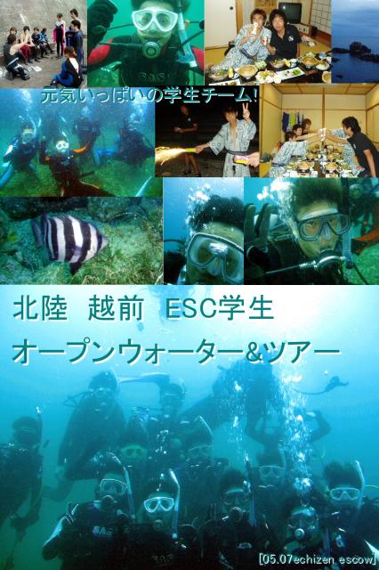[ポイント] 越前 かぶし岩 [天気]曇りのち雨 [気温]24-27℃[水温]24℃[透視度]5〜8m[海況]うねりあり [生物やトピックス]大変盛り上がって行ってきました〜っ雨という予報だった天気もお昼過ぎまで晴れ間が広がり、初夏気分を味わってきました。海の中ではダイヤモンドリーフを取り入れたゲームをしたり、アーチをくぐったり。途中でOWチームと合流し、16人で海中記念撮影!! いろんな魚の赤ちゃんや、ウミウシがいっぱいいました!