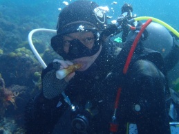 しょうぢさんは特性食べれるスノーケルでダイビング♪ダイビング後はお腹がすくので水中で頂いてエキジット♪