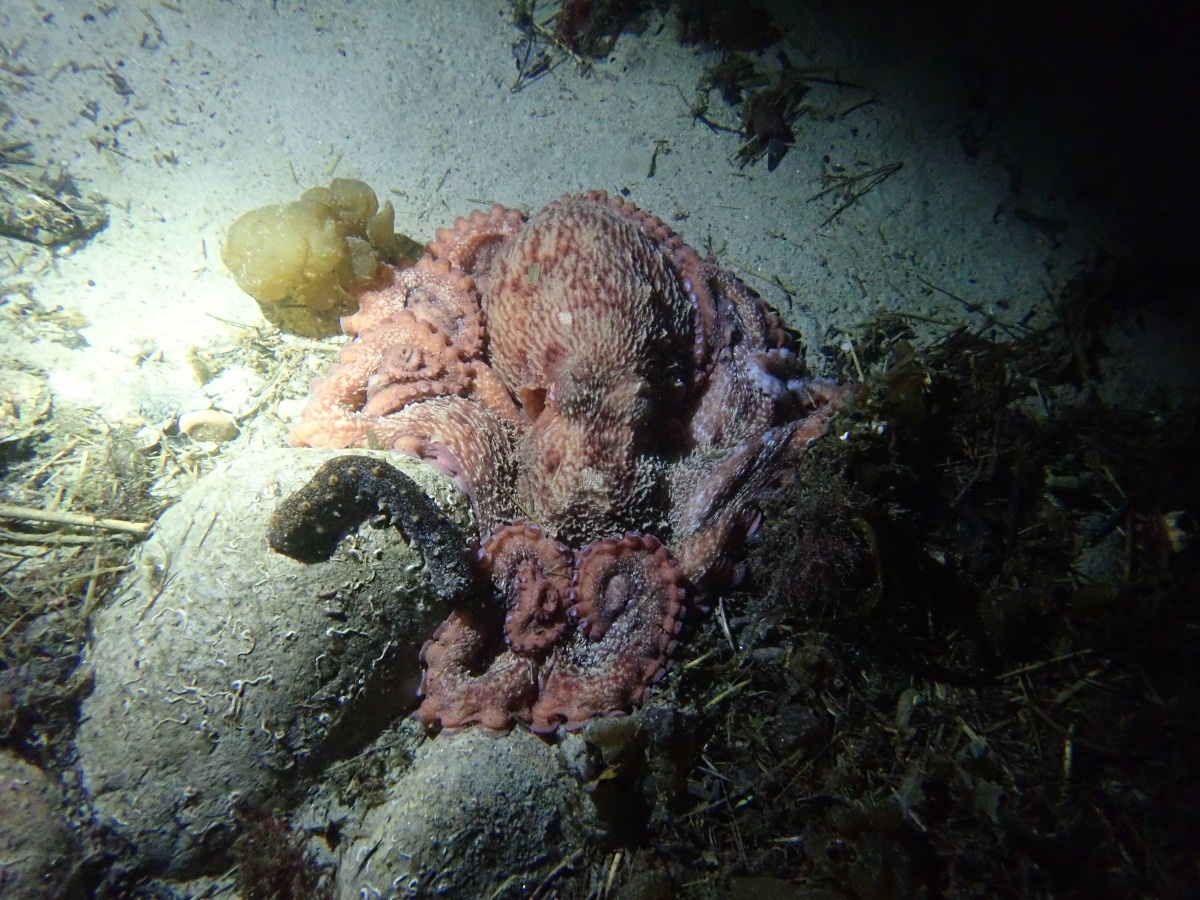 浅場への帰りがけには、かわいいサイズのミズダコ♪