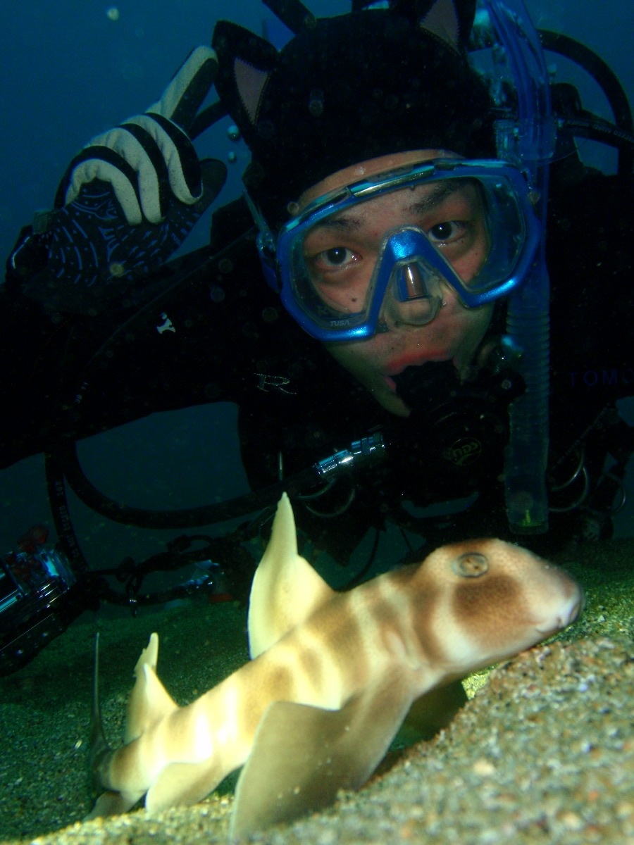 今日もネコ耳フードでネコザメ撮影
