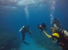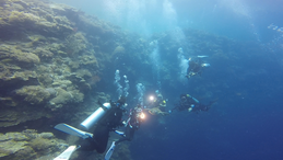 遠い昔は川が流れていて陸地だった。そんな場所で潮汐を利用したドリフトダイブ!!長いと1300m近く流されて遊びます。