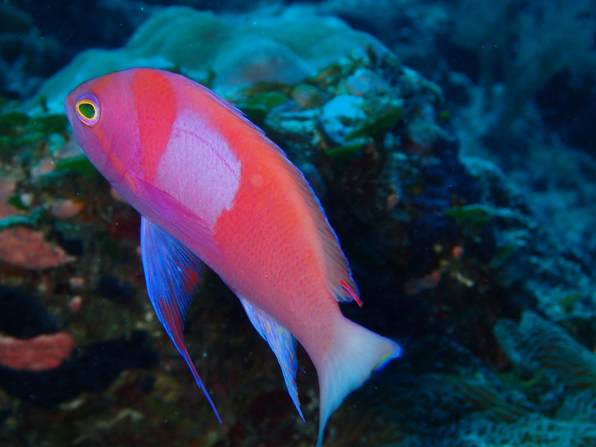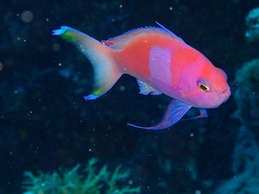 浅いところにはアカネハナゴイが盛沢山!深場にはサロンパスで有名なスミレナガハナダイ♪