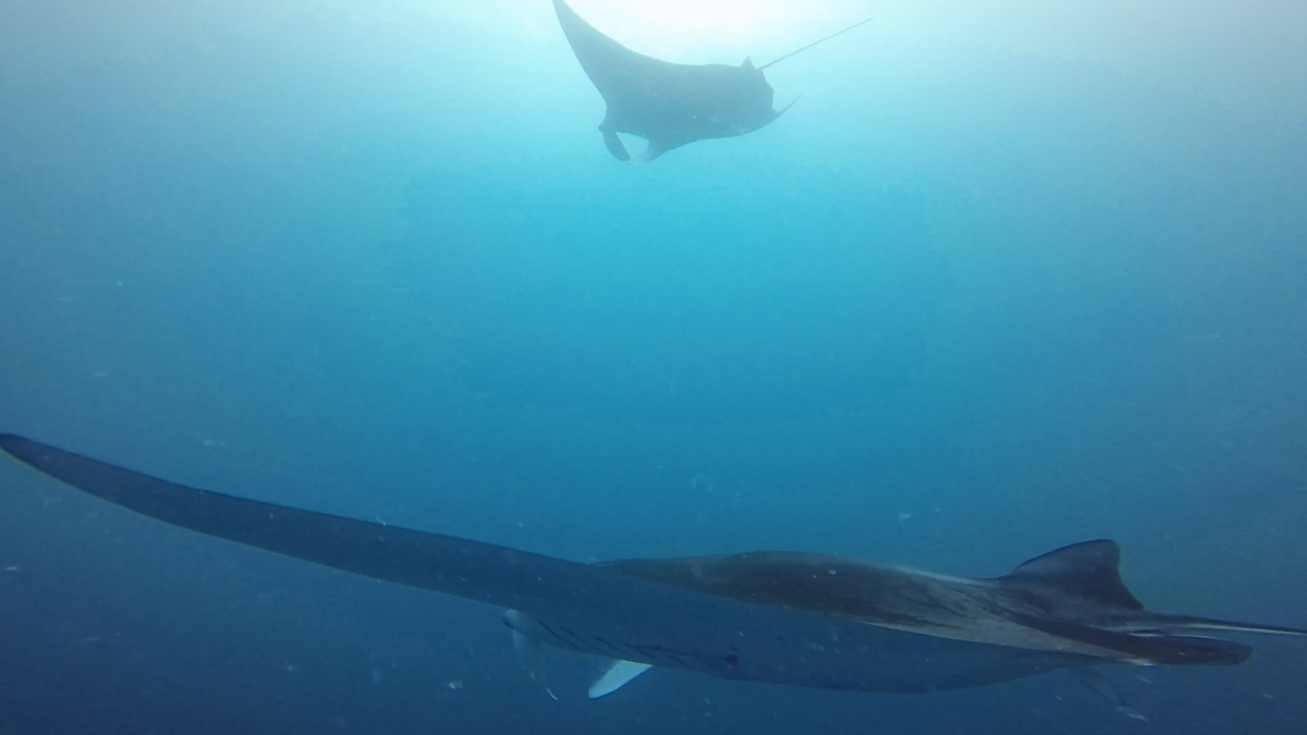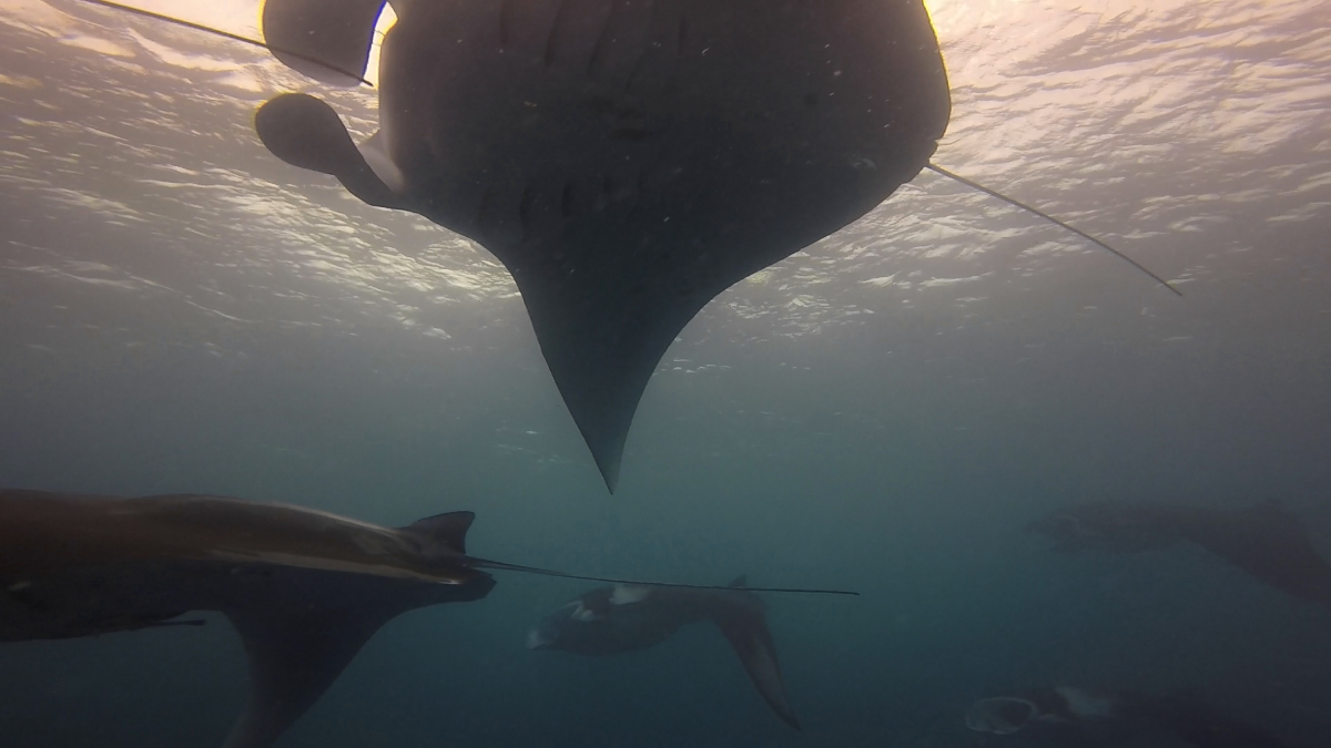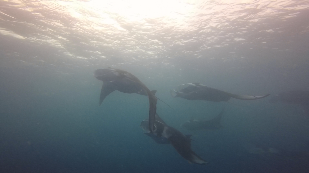 スタートから中層を泳ぎ、早速マンタ!マンタ!!マンタ!!!お~横からやってくるのは6枚マンタチーム!
