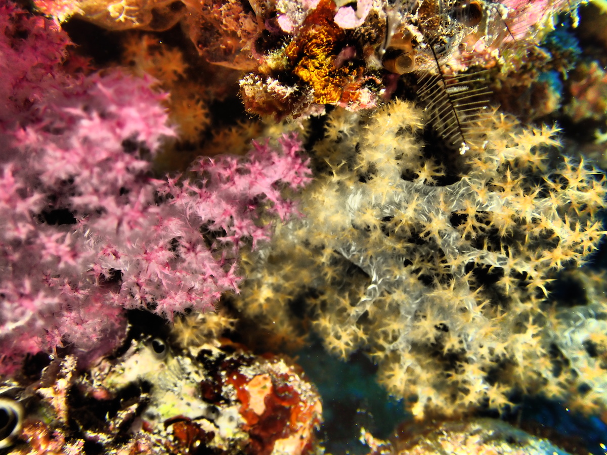 コモンシコロサンゴが群生しております!たくさんのノコギリダイ・スカシテンジクダイ