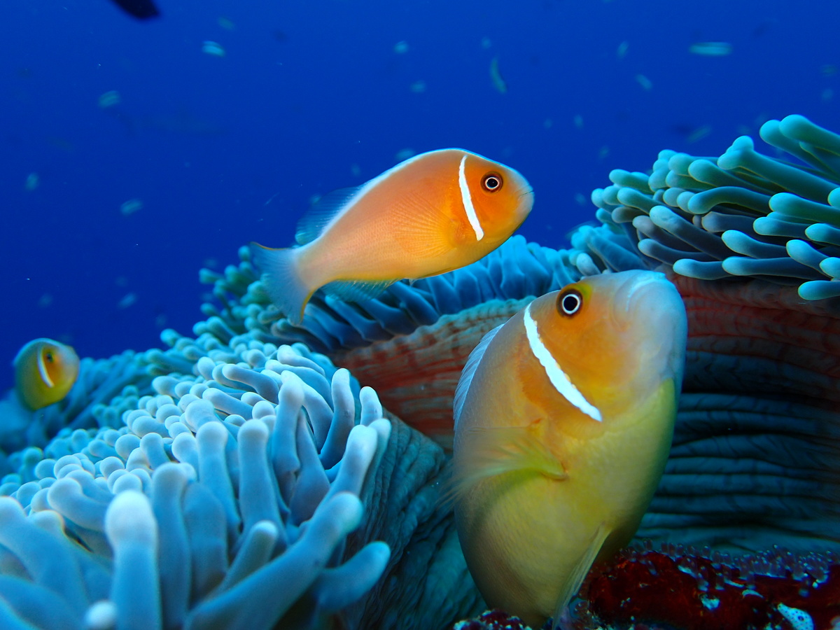 真っ白な砂のラインが際立ちます♪ 流しているとハタタテハゼ・ハナビラクマノミに通りすがりのご挨拶。