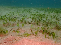 白い砂地にさわやかなGREENウミヒルモに癒されます。