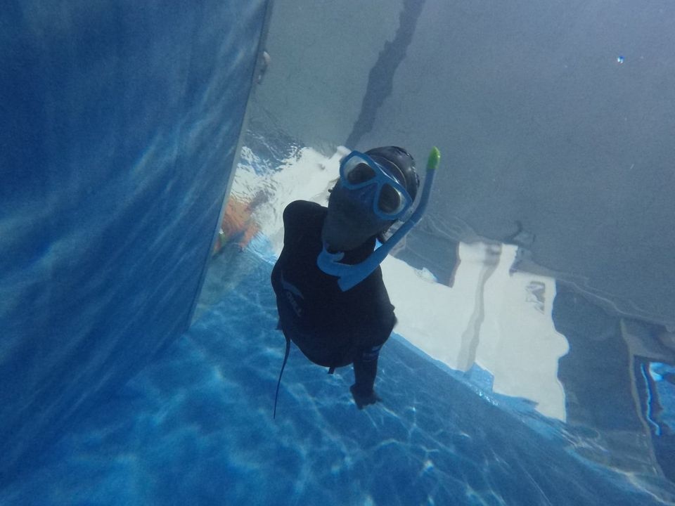 マスクは、何もつけてない?水の抵抗の少なさと耳抜きのしやすいシリコンにびっくりでした!