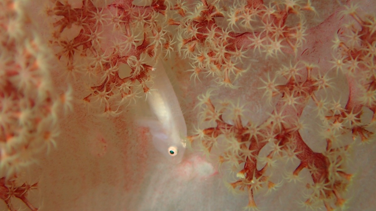 ソフトコーラルわんさか、オルトマンワラエビ、スケロクウミタケハゼ