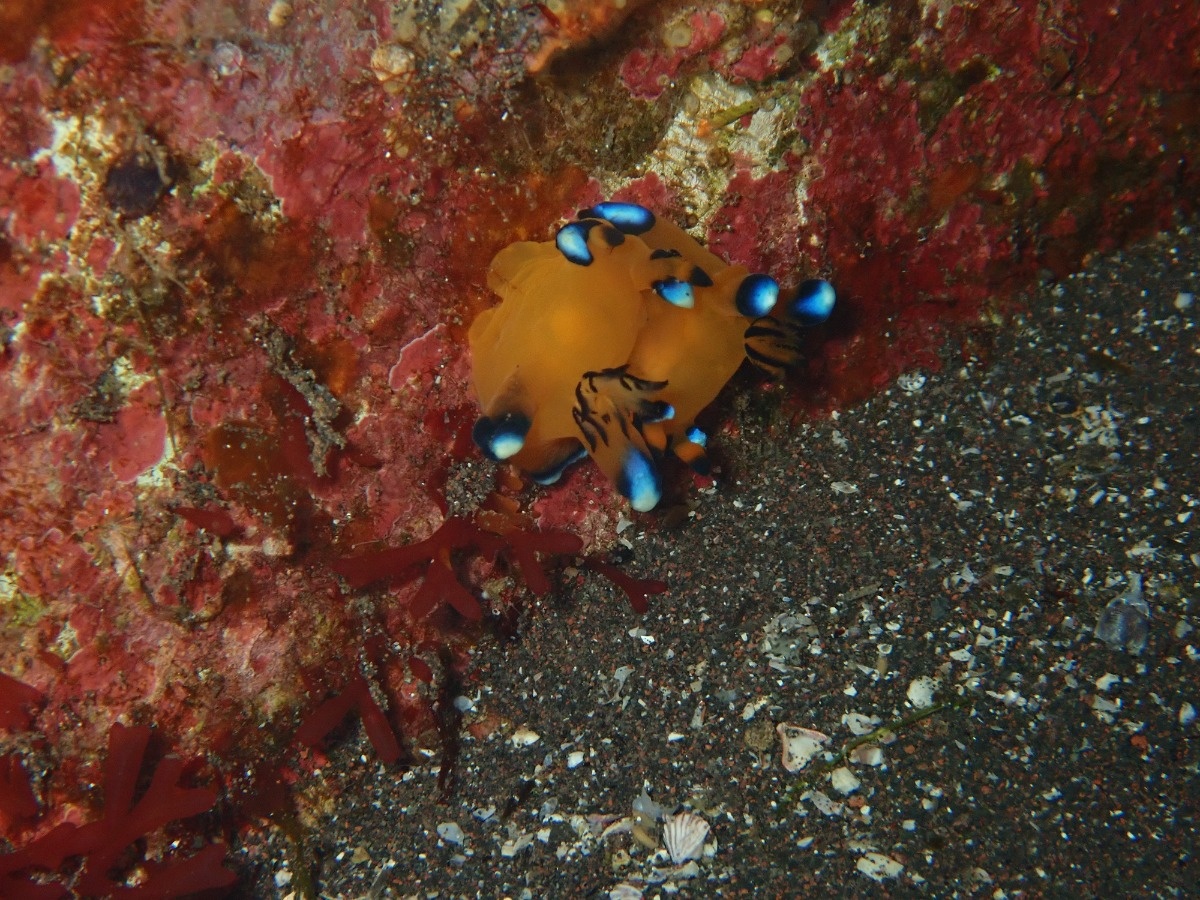 イロカエルアンコウ、オオモンカエルアンコウ(遠くから目視のみ、)ウデフリツノザヤウミウシか×2