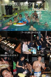 敦賀ツアー参加のサークル生とH野さんを迎えてプールあり!BBQありの大はしゃぎ!