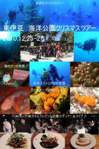 視界20mのなか美しい有名なクリスマスツリーをみて・・・水中ポストへクリスマスカード投函して・・・夜はペンションでクリスマスディナー&ライブ♪おたのしみプレゼント交換会もあり・・・素敵な2日間となりました!