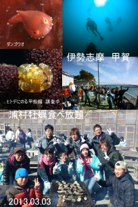 ダイビングを終えて、浦村へ移動。有名な浦村牡蠣を食べ放題です。焼くためのマキの煙がもくもくもくもくもく。。