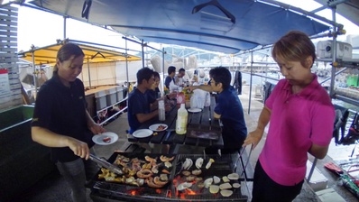 今回はスティングレイジャパンの野村さんと鈴木姉妹が前日にBBQの準備をしてくれました。
