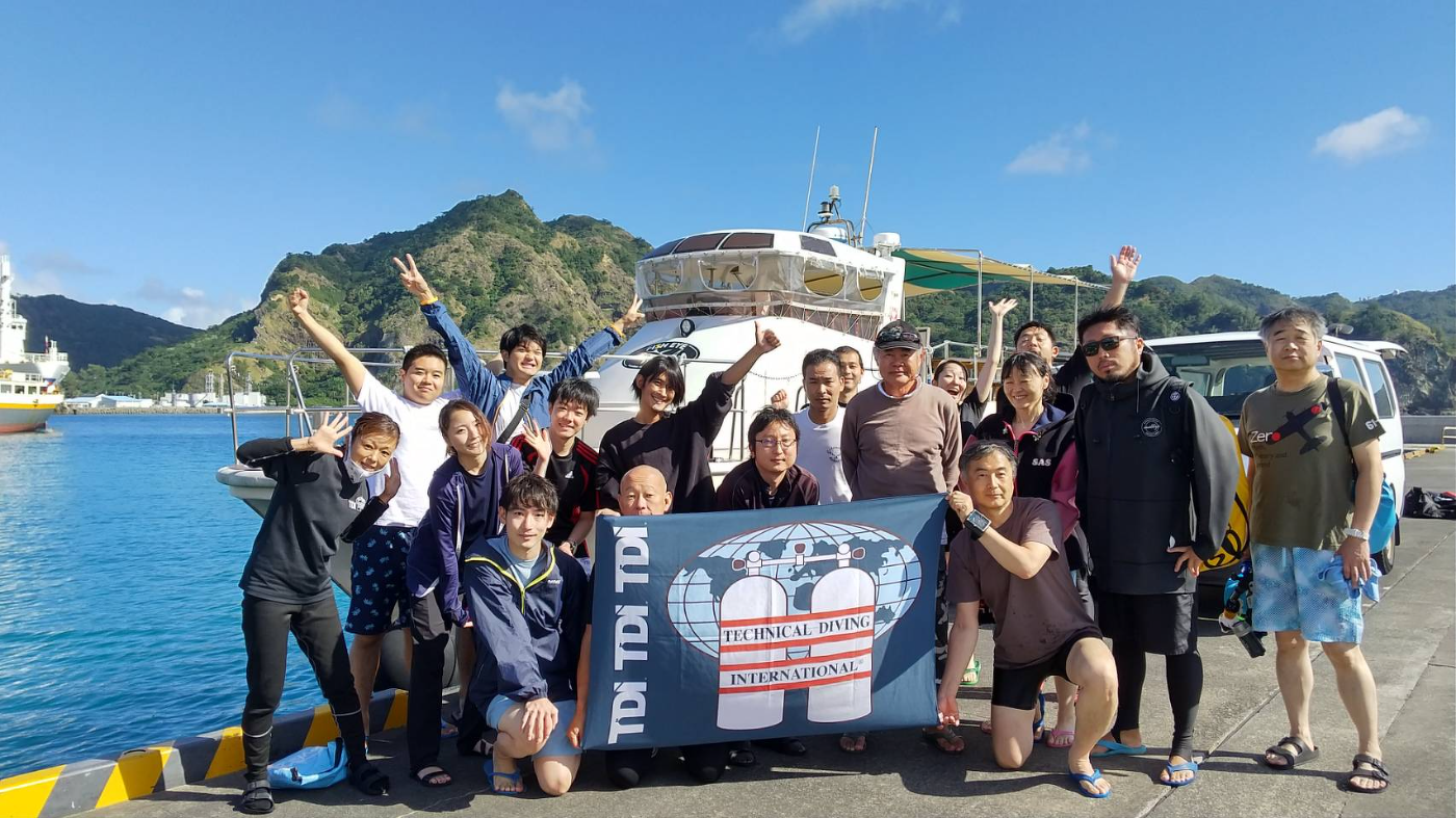 フィッシュアイ、水中写真家戸村氏、ダイブプロショップevis合同で、スポーツダイバー、テックダイバー総勢19名で潜り、水陸ともに楽しく過ごすことができました!