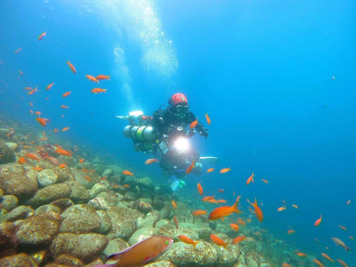 海はおだやかで、水温は17℃海もきれい。深場から浅場まで、おさかな天国、減圧中もあきることがありせん。楽しいテックツアーでした。