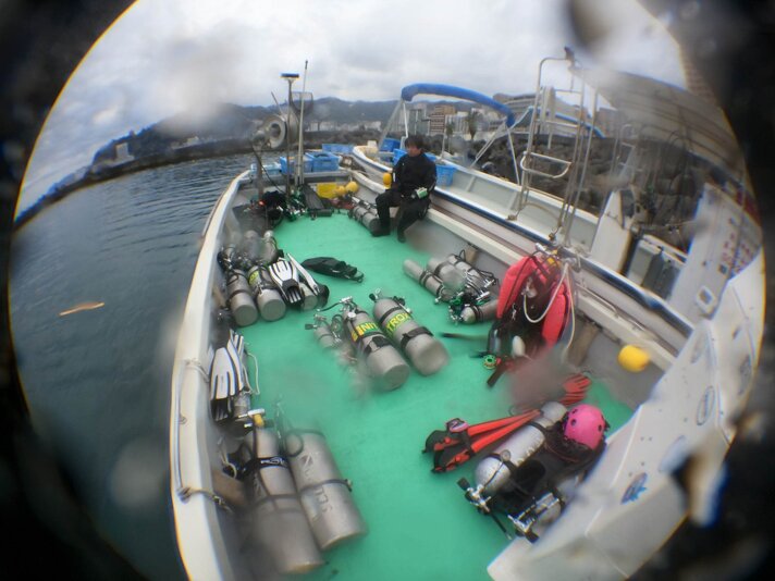 私たち8名が浮上しているシーンがよかったそうで、私たちのシリンダーをみんなで船上にあげてくれました。あんな笑顔で、シリンダーを引き上げてもらったことはなかなかないですね。